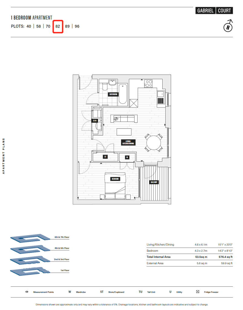 GC Plot 82,East facing, floor 5, 53.5 sq m/ 576.4 sq ft, £449,000, HTB