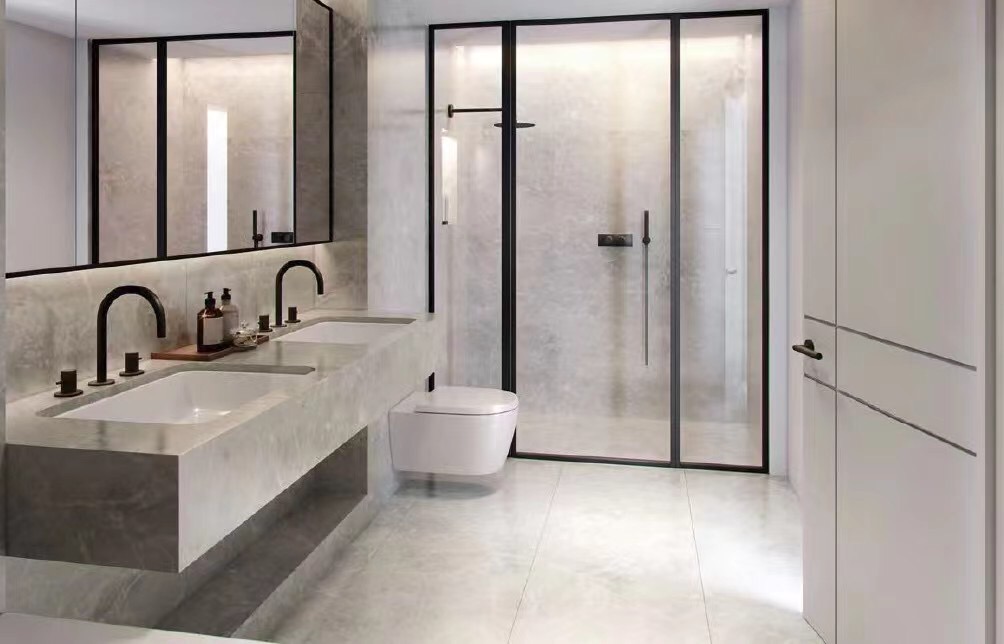 浴室及套内浴室设计精致,配套齐全。地砖和墙砖色调柔和,配备 Ideal Standard 白色卫浴,独立浴室配有玻璃淋浴屏风,步入式淋浴间配有滑动门。其他配件有汉斯格雅高端镀铬水龙头和配件、加热毛巾架等,打造舒适的盥洗空间。