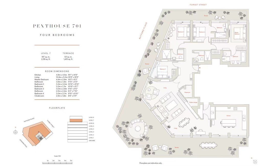 (4)顶层:四居室 室内197平米,阳台 131平米,价格:610万英镑。