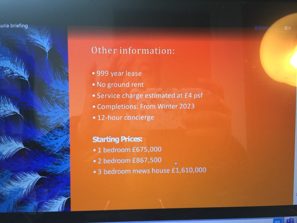 项目首付10%(14.95万英镑,134万人民币起),预计交房时间为2020年6月。