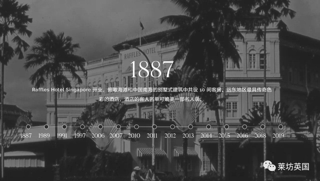 莱佛士始终致力于为您带来最热情的欢迎、最丰富的体验和最愉快的记忆。今天,这一卓越传统仍在世界各地延续。从新加坡莱佛士酒店经典壮观的殖民建筑开始,到迪拜、巴黎或华沙的都市绿洲以及马尔代夫、巴厘岛或马卡蒂的宁静度假村。莱佛士的故事将很快在伦敦、波士顿、莫斯科等地继续开展。莱佛士已成为豪华、魅力和超凡体验的代名词。每家酒店都是一片处在文明交汇处的宁静而充满魅力的绿洲。每家酒店的选址都经过酒店自身认真的斟酌。均为独特、卓越、无法定义的莱佛士风格。