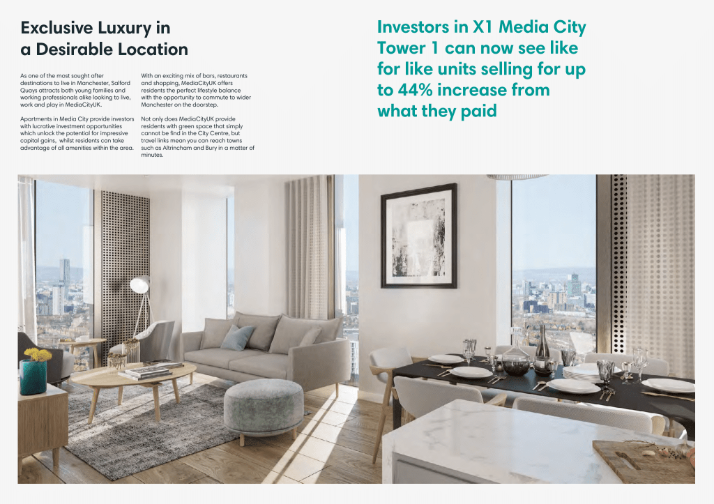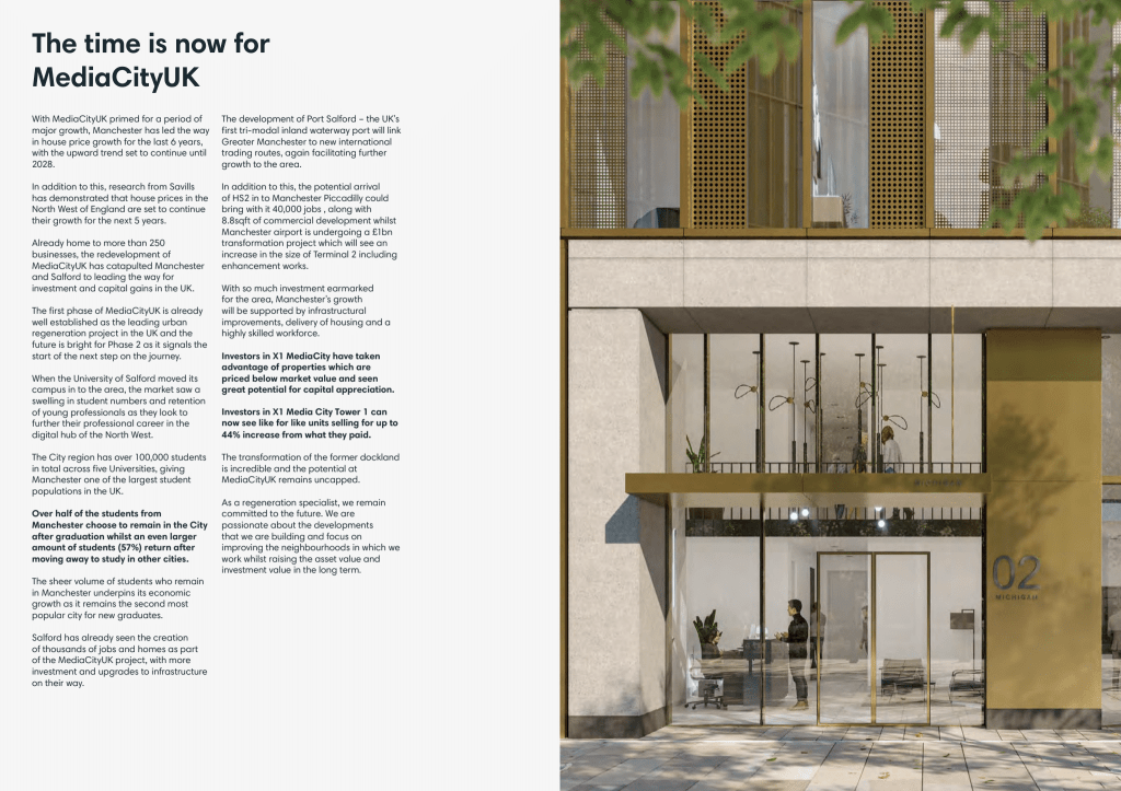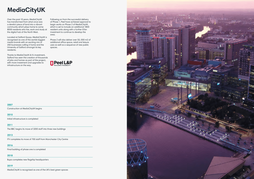 · 媒体城拥有约 250 家企业,包括华为、BBC、ITV和Bupa 保险。该地区准备开始第二阶段发展,投资将超过100亿,吸引更多企业、居民等迁入该地区,进一步创造对住宅的需求,为该地区的价格和租赁需求创造巨大潜力。