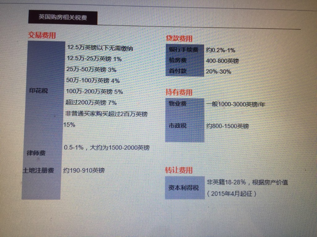 | 印花税 | 12.5万英镑以下无需缴纳 | 银行手续费 | 约0.2%-1% | |