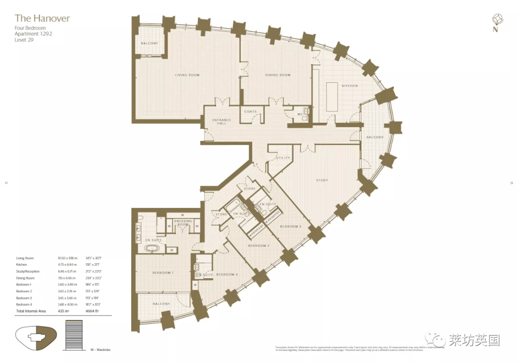 本期介绍的四居室顶层公寓The Regent 与 The Hanover位于Westmark的最顶层第29层。