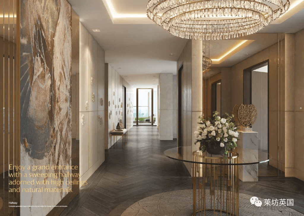 相比于客厅的开阔,顶层公寓过道的水晶灯格外引人注目,营造出豪华与尊贵感。