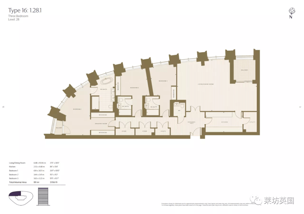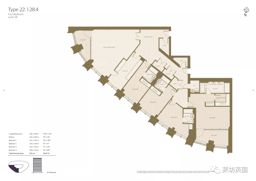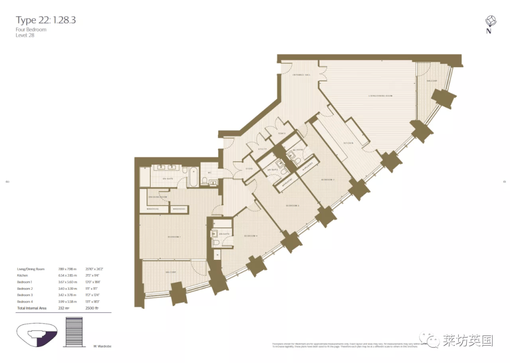 三居室户型的面积约为191㎡,四居室的面积约为232㎡与243㎡。功能区包括了客厅、餐厅、厨房,卧室以及多个储物空间等。位于28层,这四套住房同样拥有绝佳的视野,并可以欣赏周边壮丽的景色。