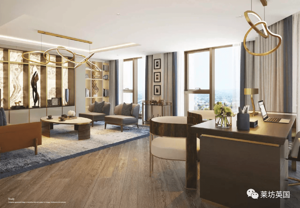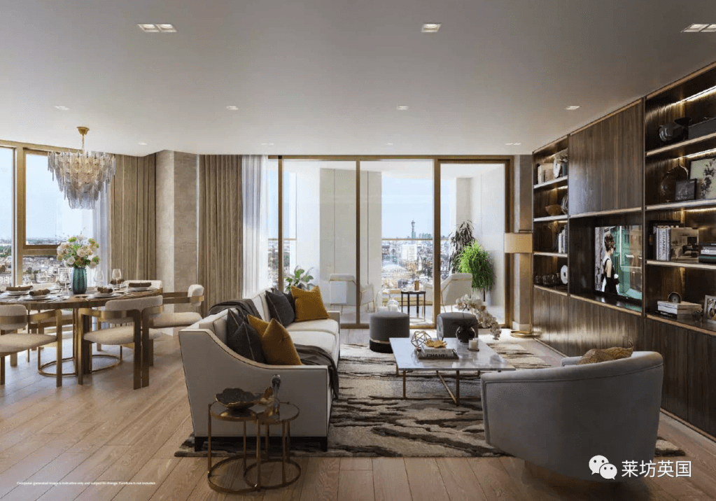 为了营造更开阔的视觉观感,设计师在每个功能区都设计了落地窗,大面积的落地窗带来绝佳的视野和采光,站在窗边就能俯瞰伦敦的天际线,营造出宽敞开阔的环境效果。