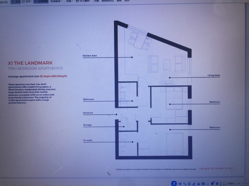 一居室价格:15.6万英镑到16.9万英镑 (约人民币156万到169万)