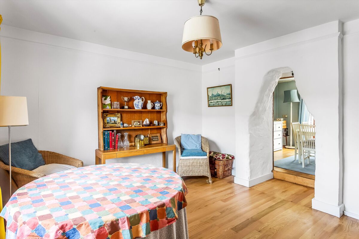 The house is set back from the road with a low wall and gate that leads to the front door through the pretty front garden. To the side of the house is a driveway with parking for one car and the detached garage, which allows for excellent additional storage space. The rear garden has a south-westerly aspect and can be accessed from a side gate from the front of the house, but also doors from the garden room and kitchen. The garden has a generous terrace which is a real suntrap with space for outdoor entertaining and dining, and there is an area of lawn with mature borders.